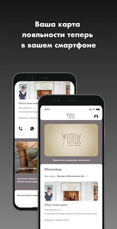 ● Accumulate bonus points and pay with them up to 50% of purchases in Estelle stores