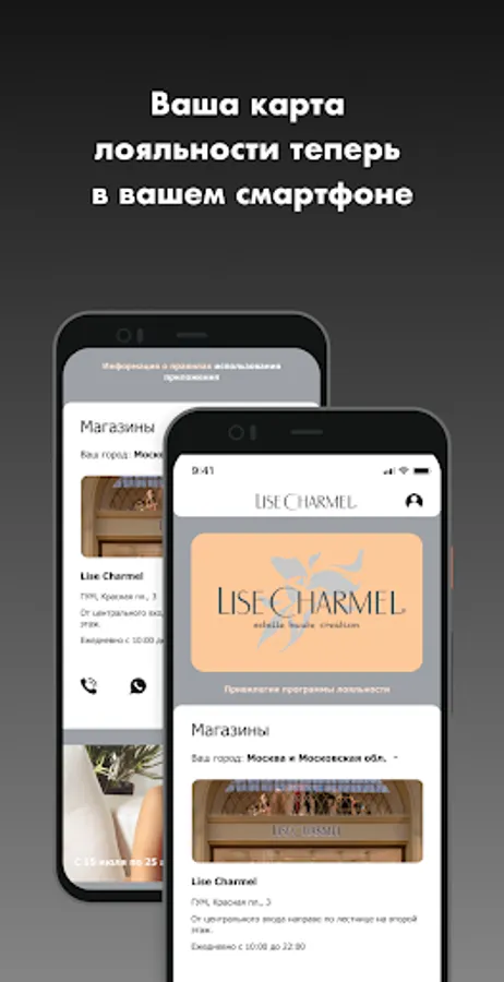 A full description of the loyalty program is available in the Lise Charmel Russia app.