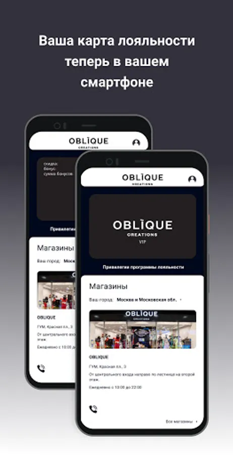A full description of the loyalty program is available in the Oblique Russia app.