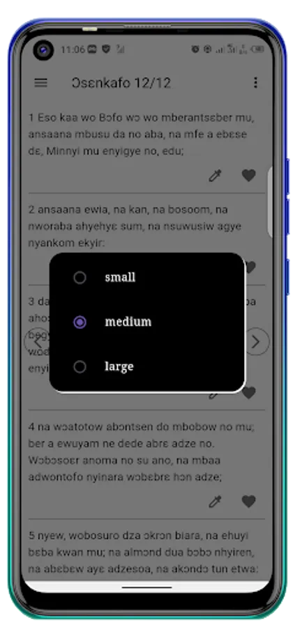 Text sizes are adjustable from small to large.