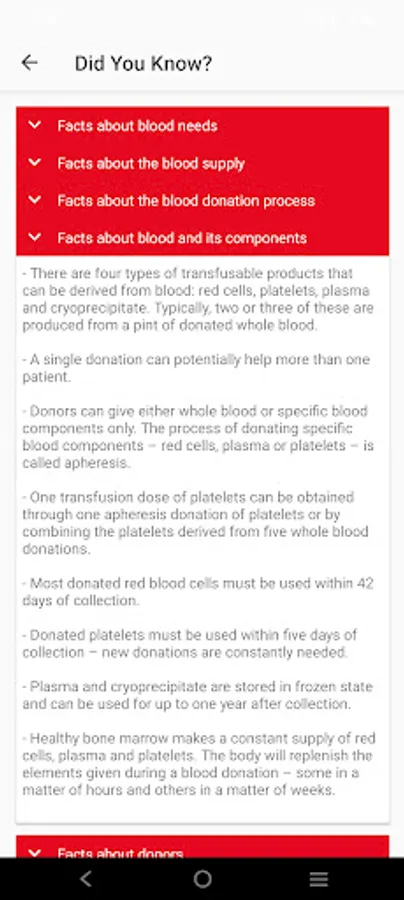 - All About Blood (NEW): Learn more about your blood and discover blood facts, types and important information about the process of blood donation.