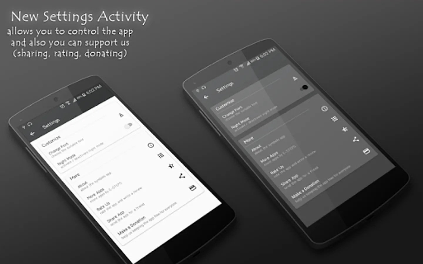 You also can customize the app in your own way changing the font and the display mode (day/night)