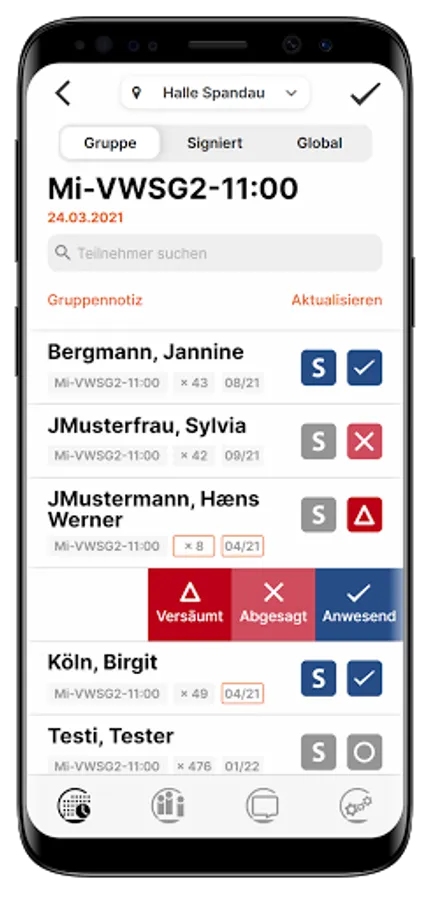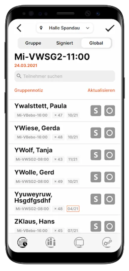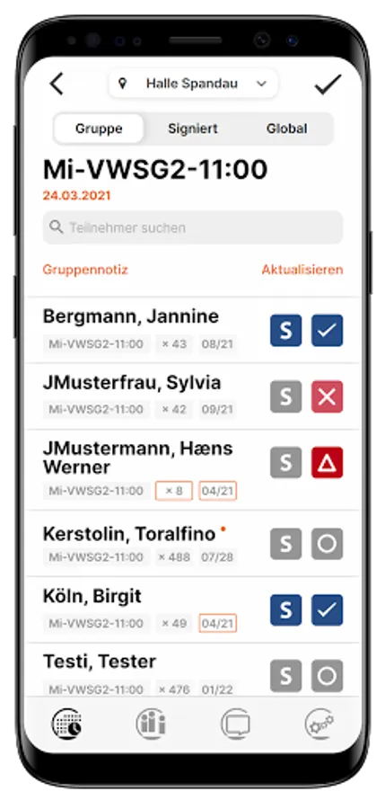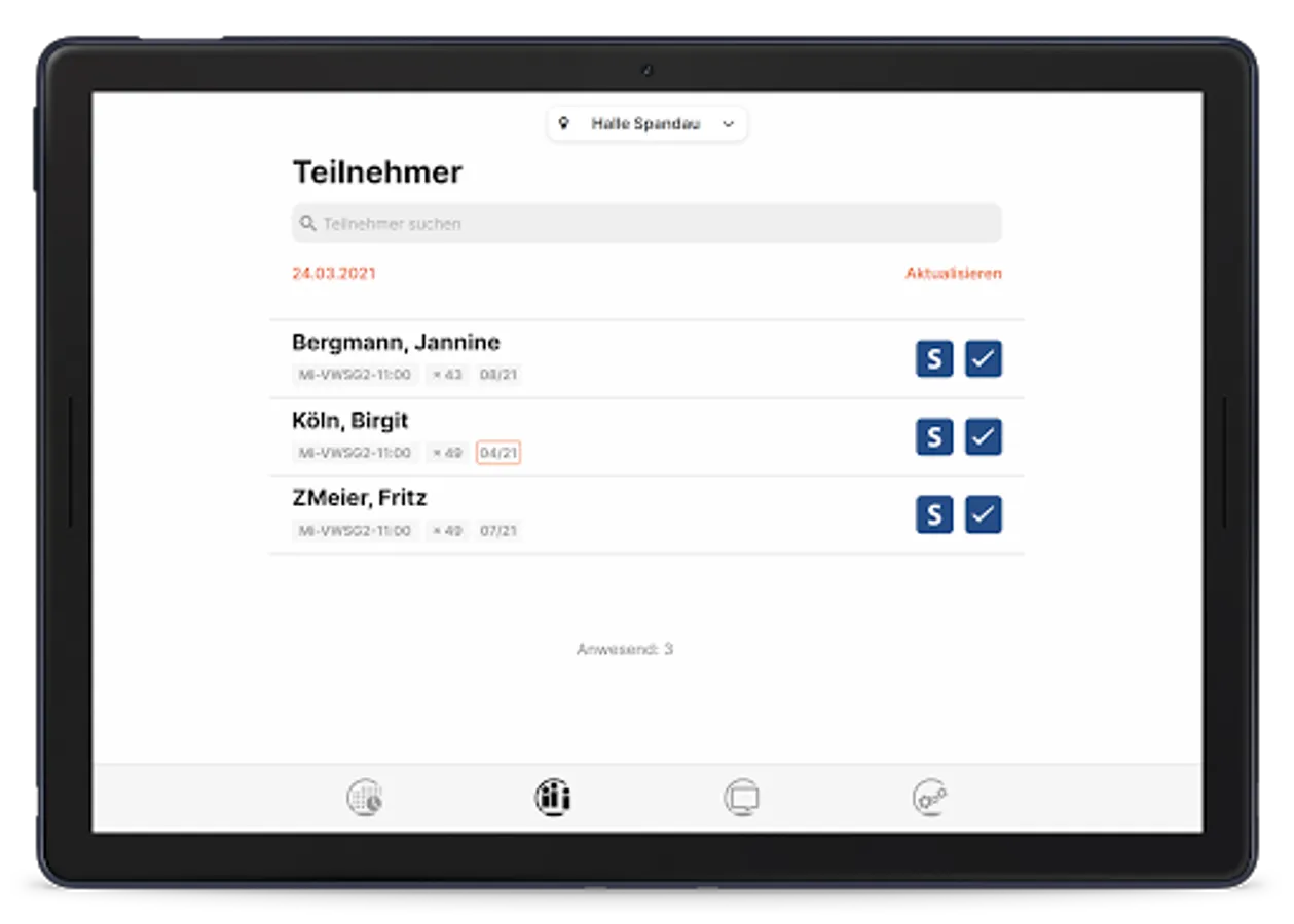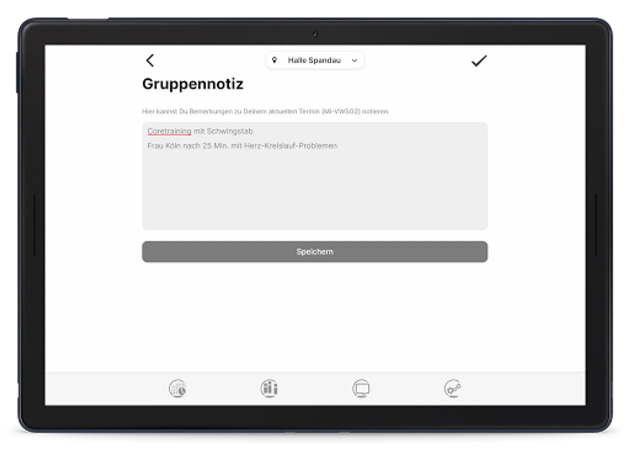 With the ULI app, as a trainer of rehab sports groups, you can digitally complete the legally required participant and group documentation with just a few "clicks", you can conveniently check the participation of your rehab athletes on the tablet in the group room and set the corresponding presence status. You can see the open units of the participants with the remaining days of the prescription and thus keep an overview at all times.