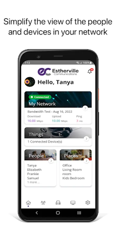 EsthervilleHQ is a simple-to-use mobile application that allows subscribers to manage their home Wi-Fi network. Take control with app features such as network security, parental controls, managing network usage, and setting up guest Wi-Fi networks.