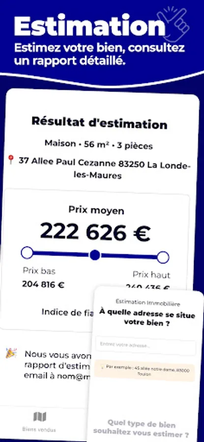 Finally, to support you as much as possible in the evaluation of the price of a property, we have provided you with an estimate form which allows you to generate a detailed estimate report free of charge based on this database. DVF.