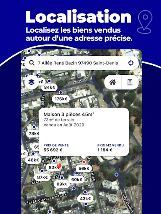 Thanks to our map of properties sold, you can navigate in search of properties sold similar to yours. You can filter by type of property (house or apartment) and by characteristics (surface, floor, etc.).
