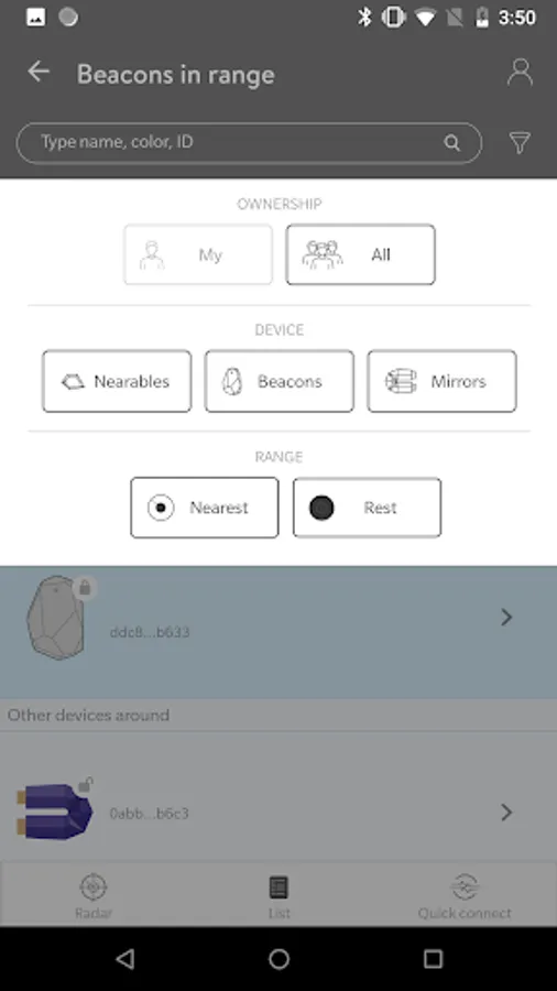 The app works with the Proximity Beacons, Location Beacons, Location Beacons with UWB, Mirror, and Stickers. It’s only compatible with Estimote devices.