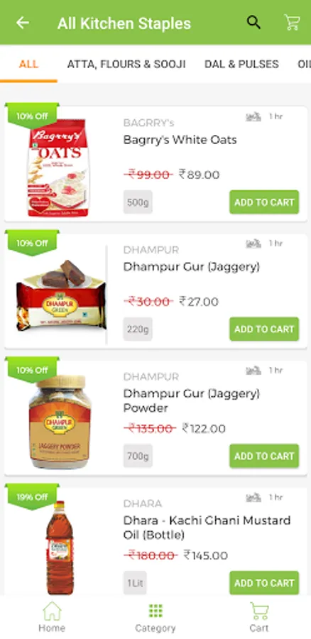 Wide Variety: The app offers a wide assortment of fresh fruits, vegetables and grocery products. One may choose from a collection of 200+ SKUs across brands such as Mother Dairy, Dhara, Haldirams, Nestle, Nature Fresh, India Gate, Rajdhani, Lawrence Mills, Uttam Sugar, Real, Baggry’s, MDH, PRS, Red Label, etc.