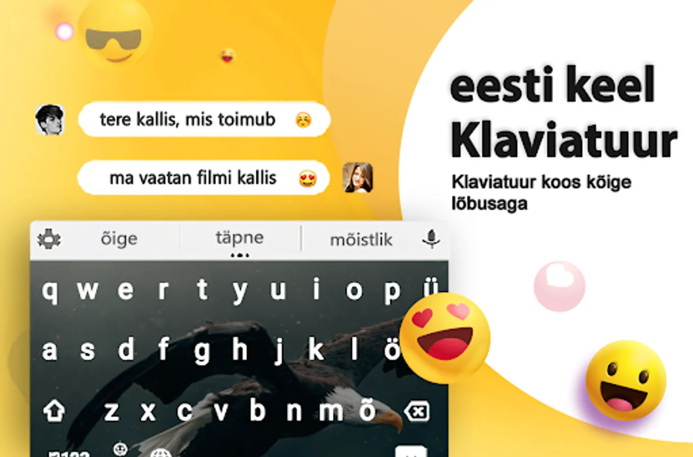 The Estonian language keyboard is an amazing app that permits the user to write in Estonian language. This Estonian keyboard app is quite beneficial for native Estonian speakers who wish to write in their language. The keyboard apps letters and emojis allows the user to customize their keyboard in order to enrich their writing experience. The keyboard apps for android is a free app that is quite easy to use. It is user-friendly and requires no professional guidance. In addition, the user can also get the premium version of Estonian keyboard so they can enjoy an ad-free facility.