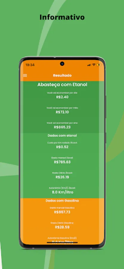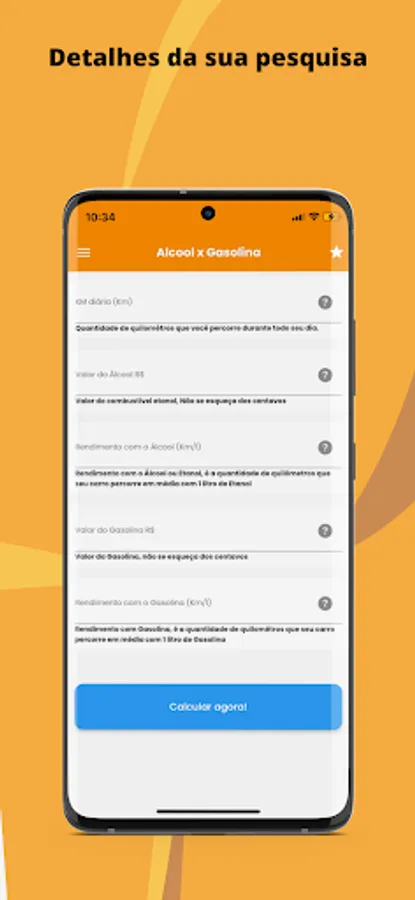 Open the app, enter the values and that's it! You already know the fuel with the best cost-benefit!