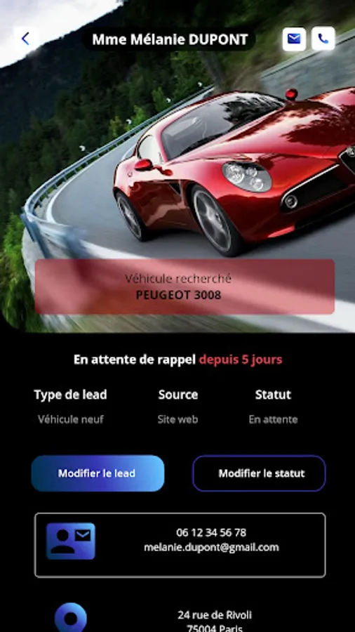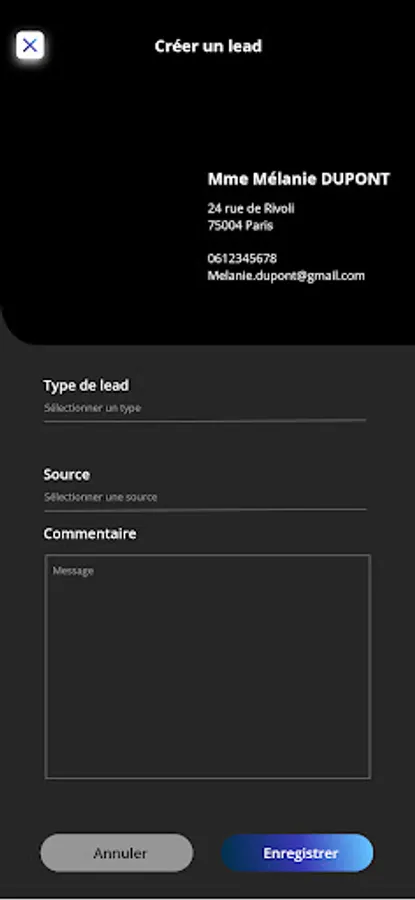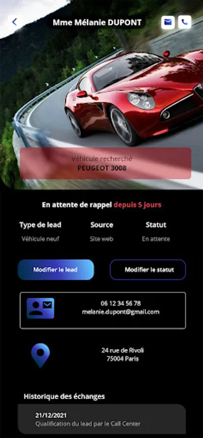 It allows the digital animation of lead processing by alerting the user of the leads assigned to him, indicating the actions to be carried out and allowing him to carry them out directly in the application: telephone reminder, e-mail, sms. The application traces in the history all the exchanges that took place between your organization and the contact. It allows the consultation of the shared agenda, the instantaneous processing of the lead (commercial opportunity) and the feedback of information from exchanges with your prospects and customers in the database.