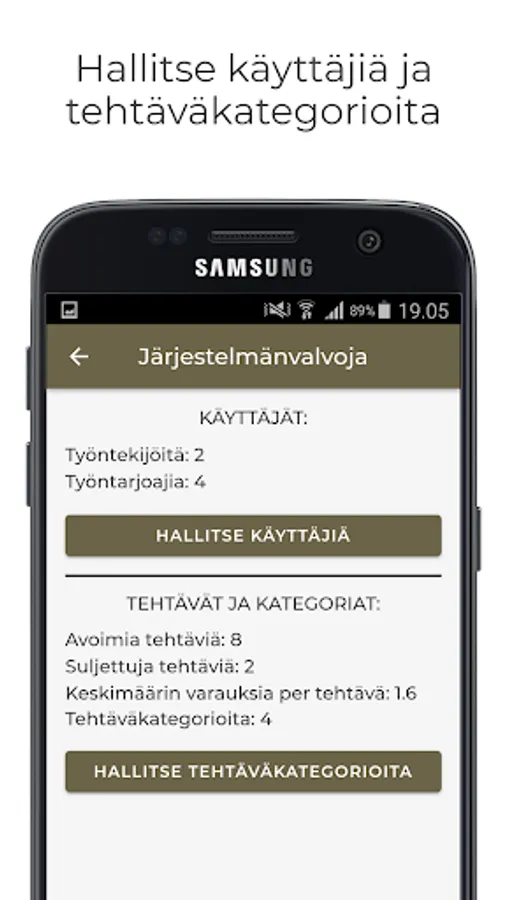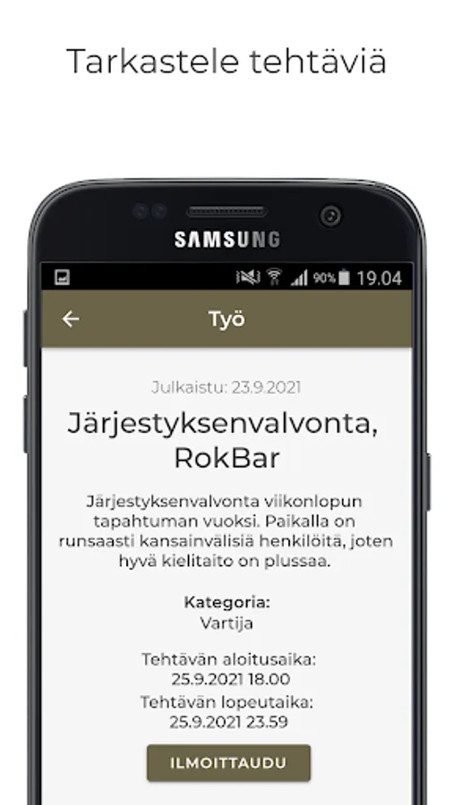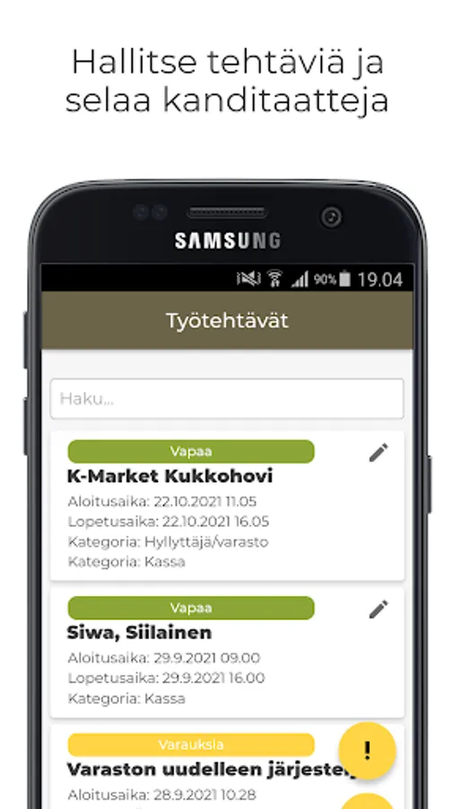 The EST Services app connects employers and employees. The employer can announce a new vacancy. Employees can browse tasks and sign up for interesting tasks. The employer can browse the candidates and choose the best one for the job.