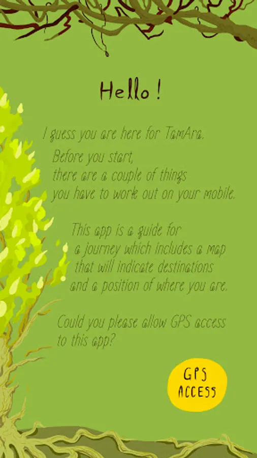Little girl Ara encounters Tam in her walk. They soon become friends and have a stroll in the woods. While they try to find somewhere to shelter from rains, Tam and Ara find a place that they have never seen before in the woods and their adventure starts there. The moment when an audience member starts the Tamara mobile application, they will become the character Ara and join the adventure.