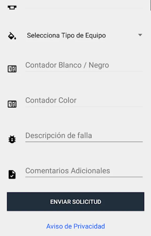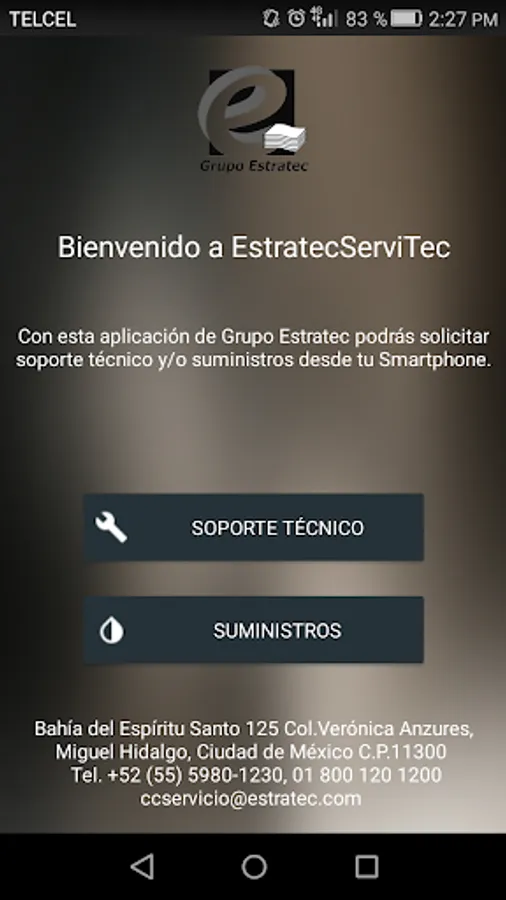 This application was developed in order to facilitate and automate the lifting of requests for supplies and / or service for printing equipment Group Estratec customers.