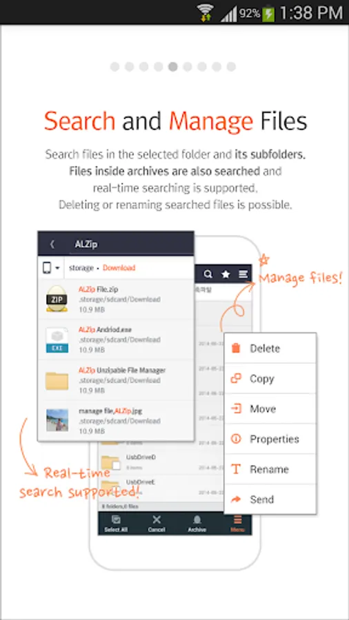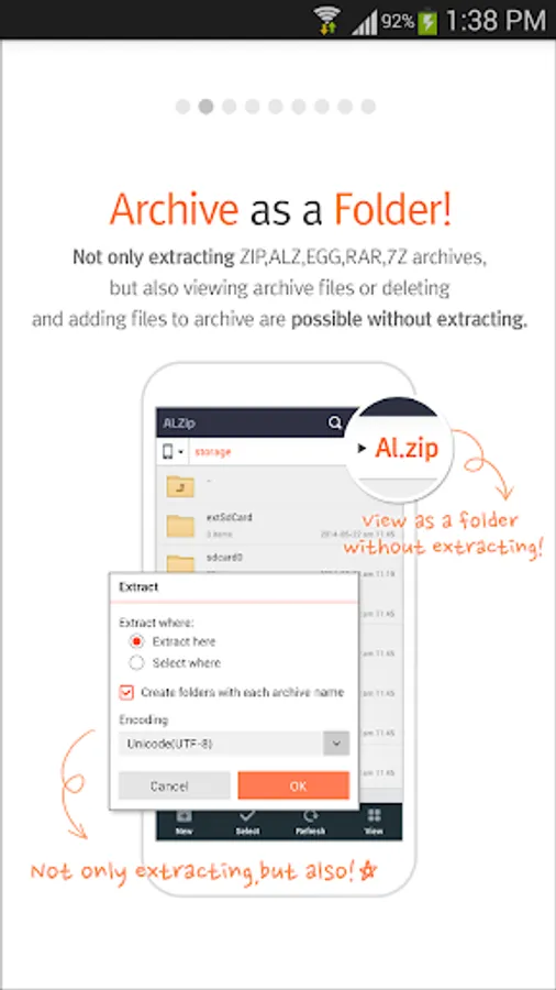File manager app with file compress & file extract features! ALZip on the Android is not only a tool to zip or unzip files, but also a file manager to open, copy, move, delete or rename files. ALZip includes every function of file managing app and file compression app.