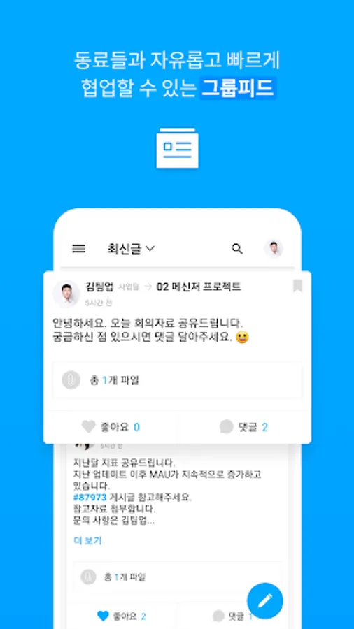 It provides a group feed that allows you to collaborate freely and quickly with your colleagues.