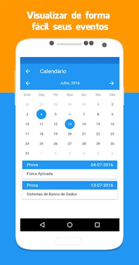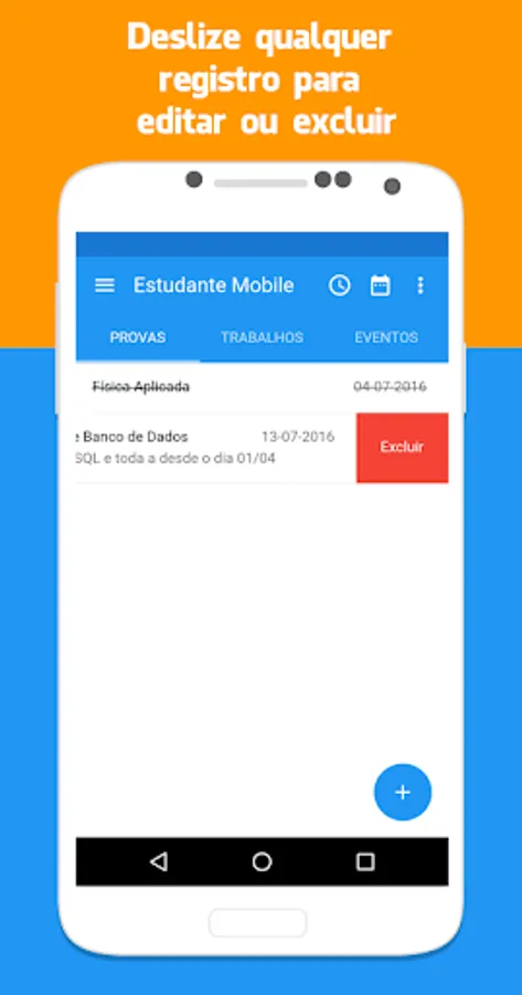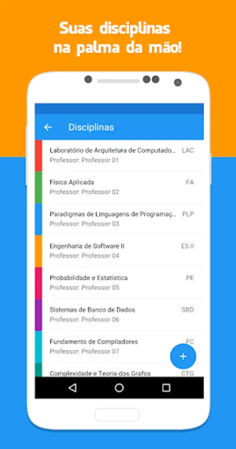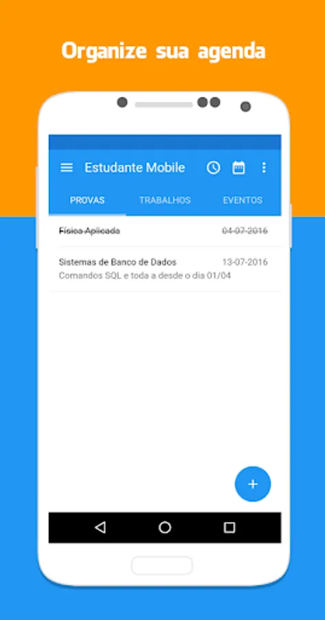 The Mobile Student application was made especially for you to organize your studies in a simple way and in his palm. The main purpose of the mobile student schedule is to keep the student organized and never forget the date of the tests and works or that commitment to the studies.