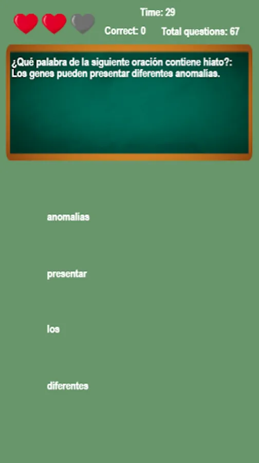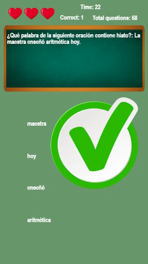 We will be attentive and improving this educational word game, as we receive your comments we want to continue increasing the number of sentences with words that contain hiatus.
