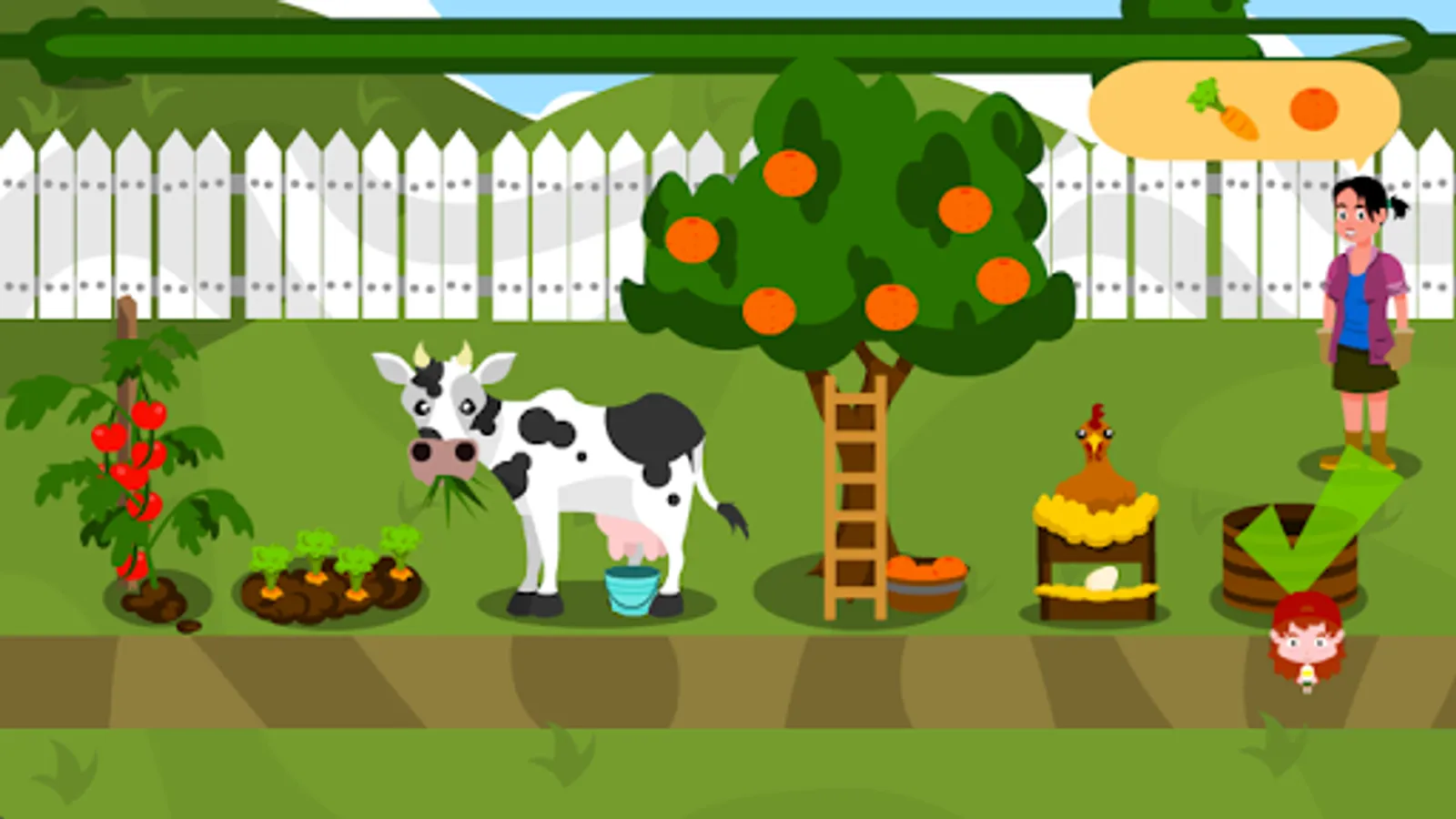 In this area the child will face a vegetable garden, where he will have to take food and place it in a container. Work on the origin of food.