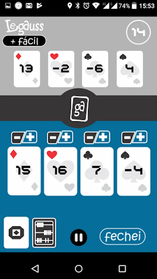 2nd Calculate with 3 or 4 cards. Just touch the cards to change them or touch the (+ -) sign.