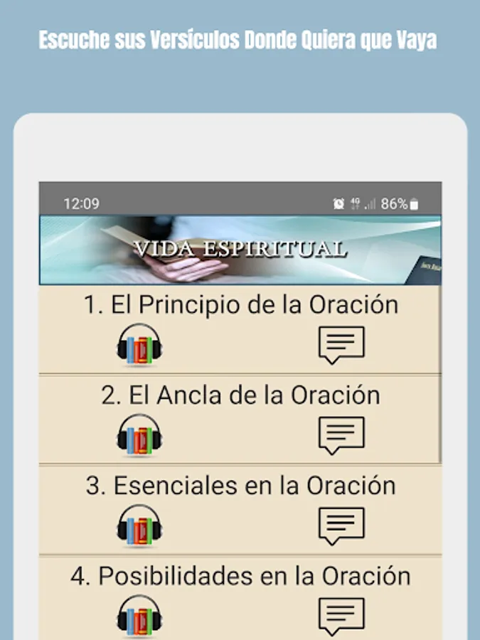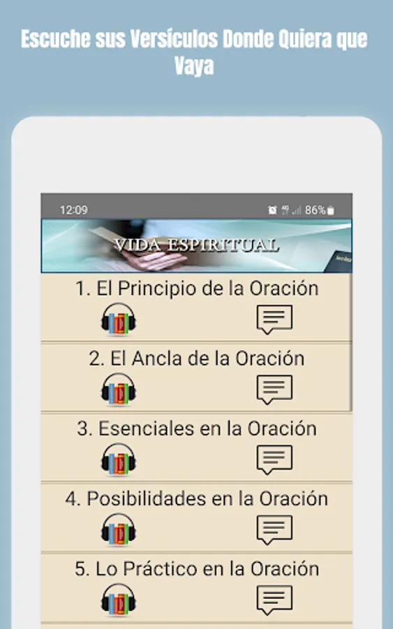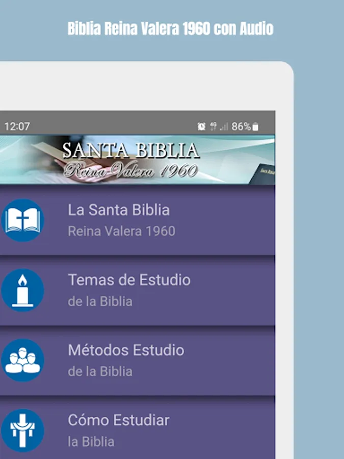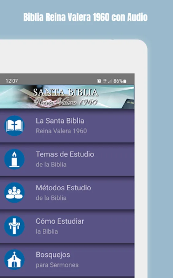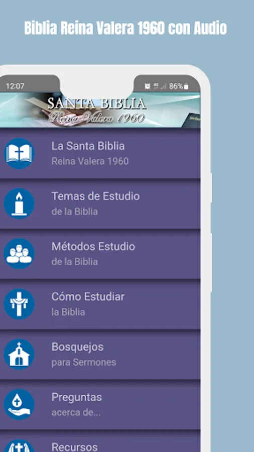 Reina Valera 1960 Bible with Audio in Spanish is a Bible prayer application that offers audio-guided Bible sessions to help our users evolve in their faith and daily spiritual life and through daily prayer to find peace in God's love .