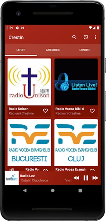 This app contains Christian radios. Keep in mind that stations frequently change stream links, and if there are any radios that don't work, first of all send me an email to check the app.