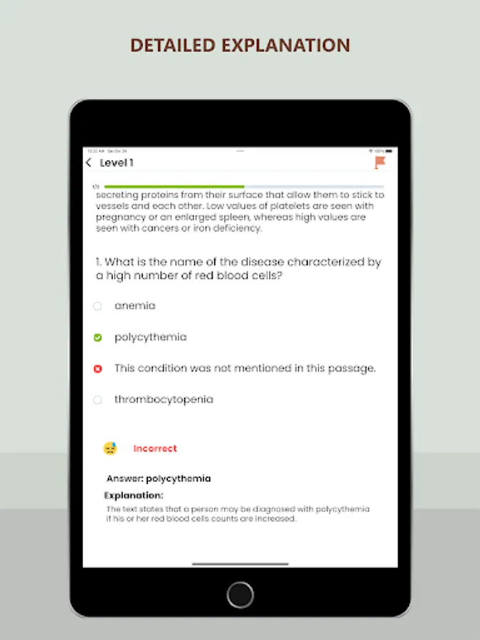 - Tracks your performance and highlights your test strengths and weaknesses with our in-app analytics.