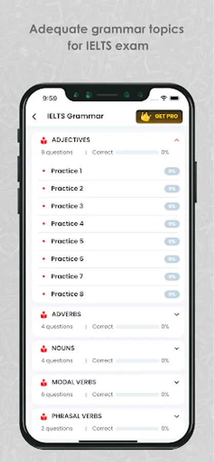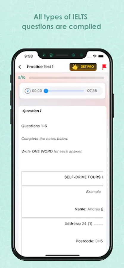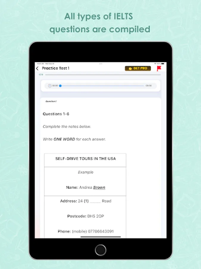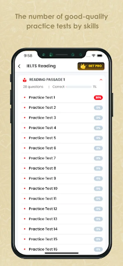 Trademark Disclaimer: IELTS® test and certification are registed trademark owned by British Council, IDP: IELTS Australia, and Cambridge Assessment English. This app is not affiliated with, sponsored, or approved by those organization. https://ielts-testpro.com/