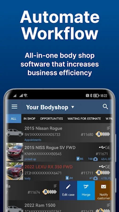 Automatically import cases from the most common estimating systems like CCC, Mitchell and Audatex.