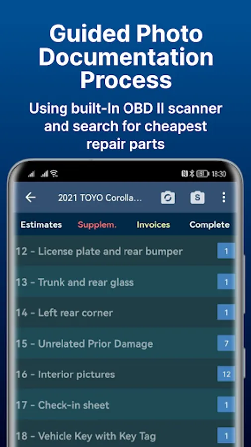 Keep the estimate documentation process simple: take photos of the damage, add preliminary photos and photos for estimate lines, invoices, and vehicle completion reports.