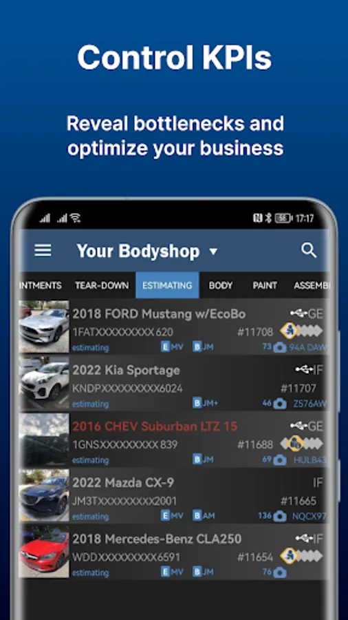 By automating various processes and streamlining operations, the app helps to reveal bottlenecks and optimize your business. Whether it's tracking the progress of a repair job, managing the workflow or ordering parts, EstVis provides real-time insights and analytics that help you make informed decisions and drive your business forward.