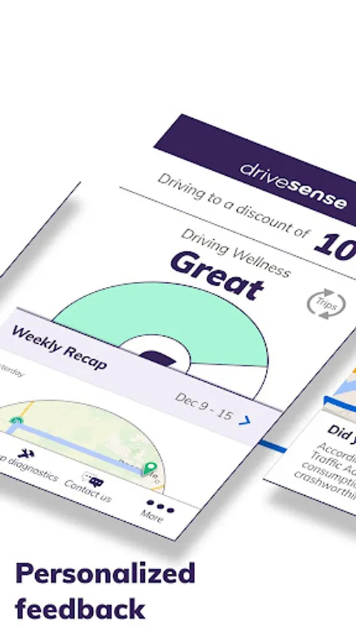 Using modern-world technology, DriveSense provides you with simple information about your driving habits so you can see how you might improve your driving wellness.