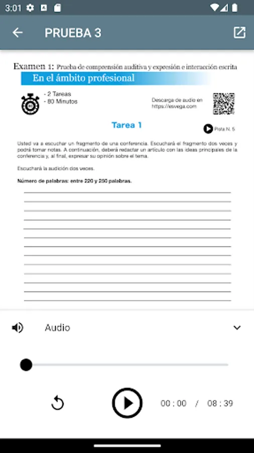 You can download the writing and oral exam as PDF file and print it after saving on a smartphone device or cloud.