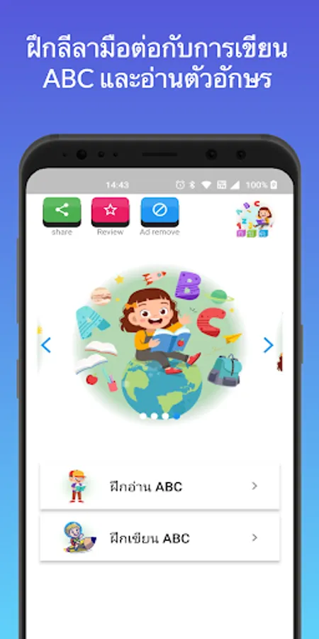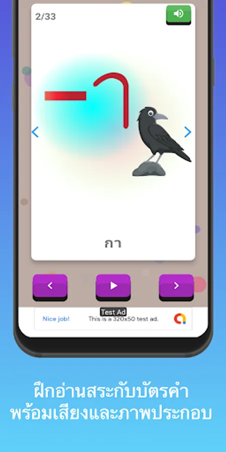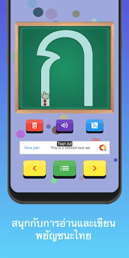 Application for pre-school kids or young children to practice the Thai alphabet, vowel writing with guided animation & AI, and reading with flashcards the app also includes the English alphabet and Numbers.