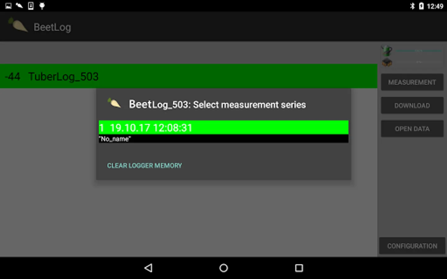 The app is the implementation and evaluation of measurements with the electronic turnip BeetLog. It provides the following functions: