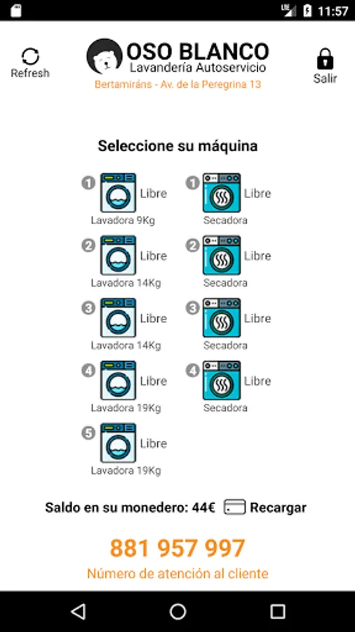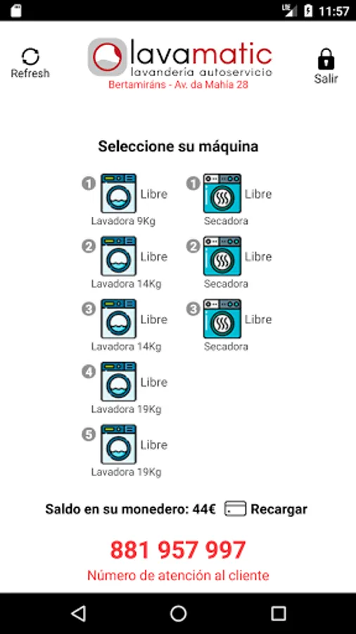 They allow to know the status of use of the machines and through its official payment gateway with ABANCA, it offers bank security with the use of any credit card and gives access to the recharge bonus system of € 1 for every € 10 recharged.