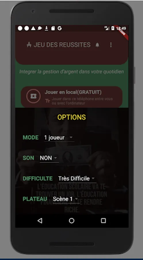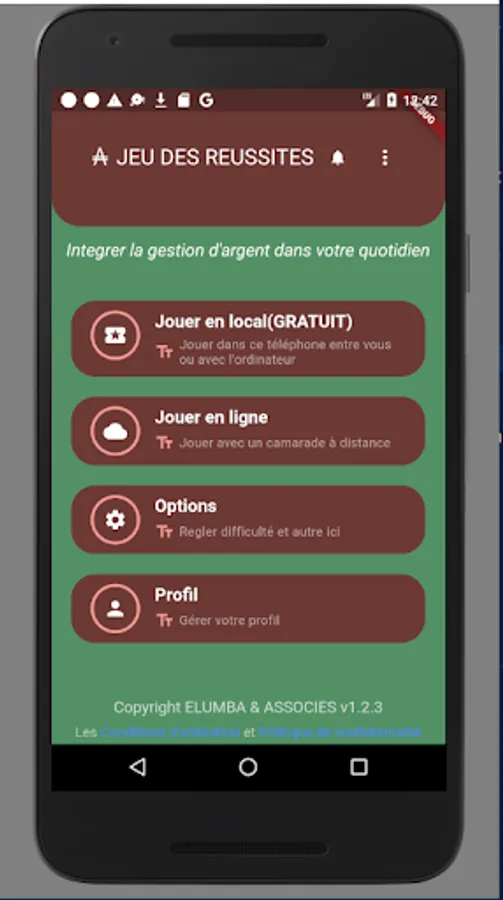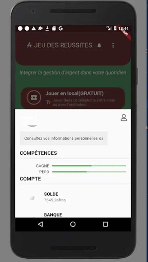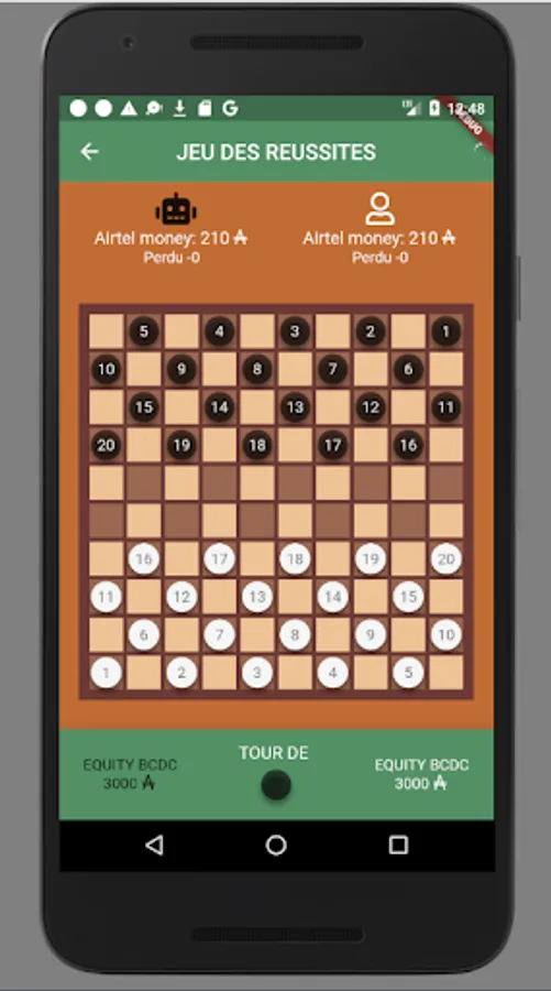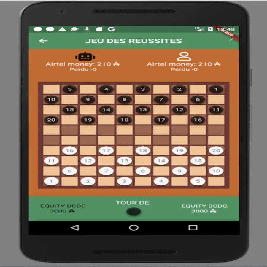 The success game is a tactical, strategic and money management game (210 AFROS corresponding to a value of virtual currency chosen between players in their bank accounts of virtual banks) to be played either against the computer or against another online or live player on computer or phone