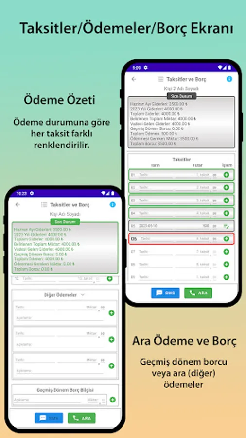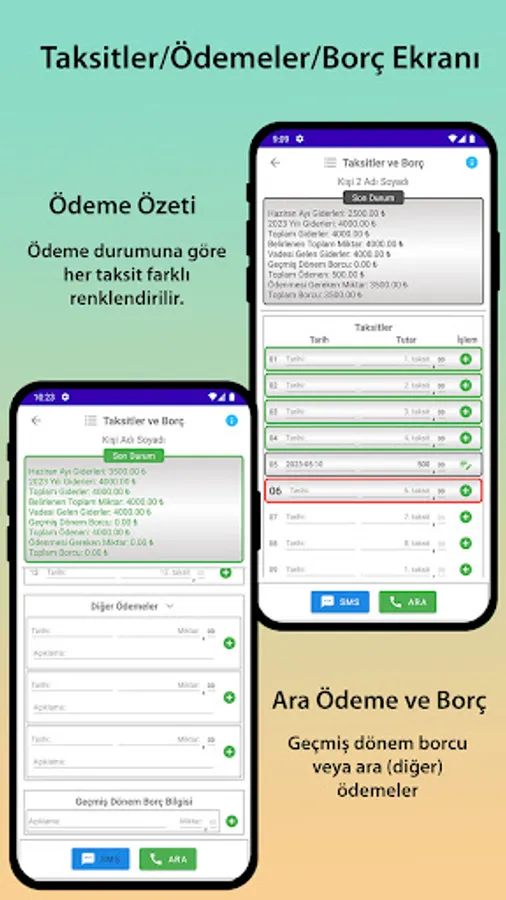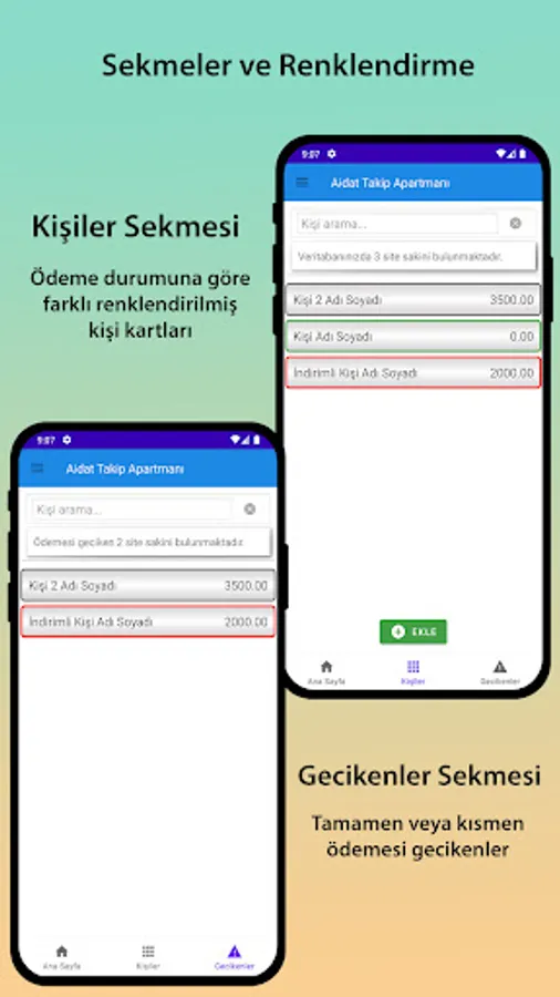 - Seeing overdue people and delayed installments / dues