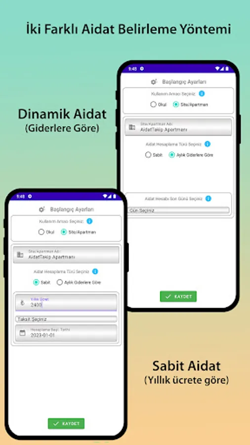 1. Fixed Fee: A fixed amount of fee is determined by dividing the annual fixed fee into installments. For example, if the annual 2400₺ is determined and the number of installments is determined as 10, the monthly fee is fixed as 240₺ throughout the year.