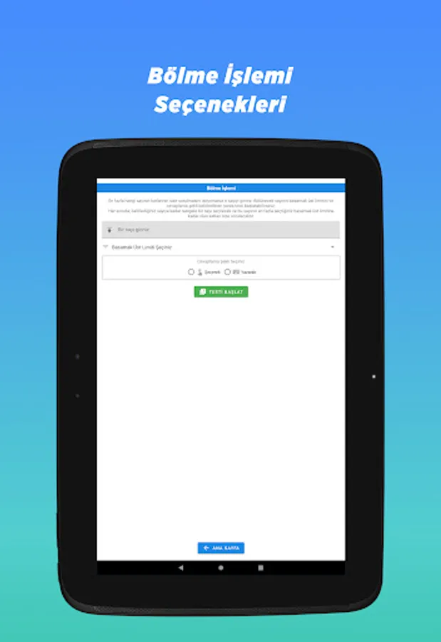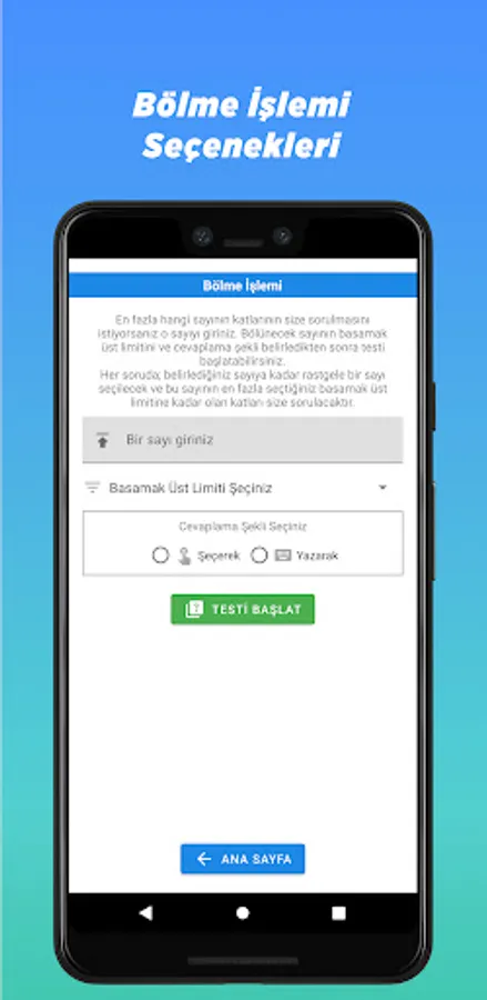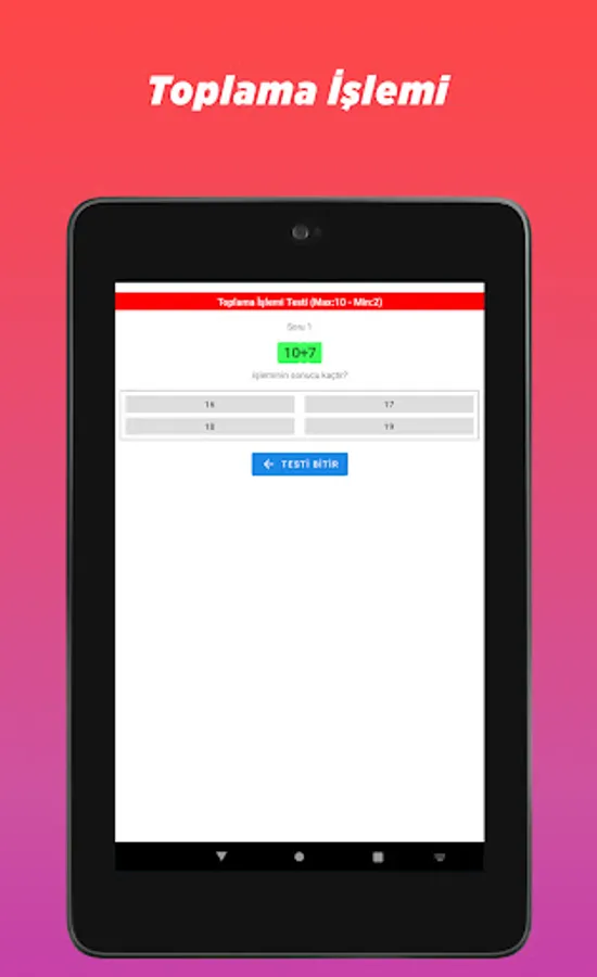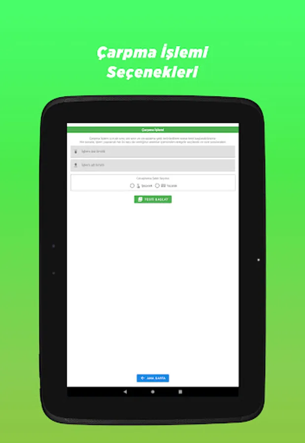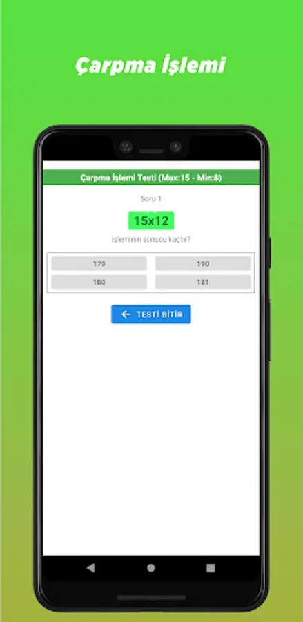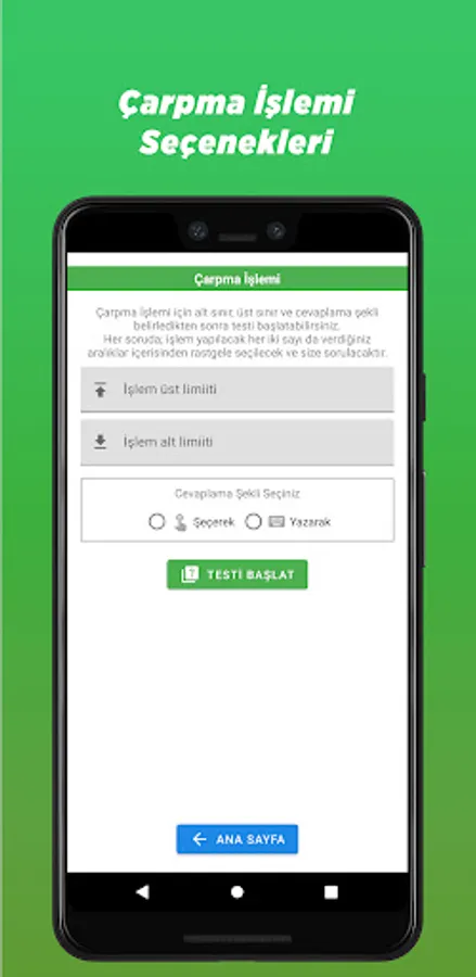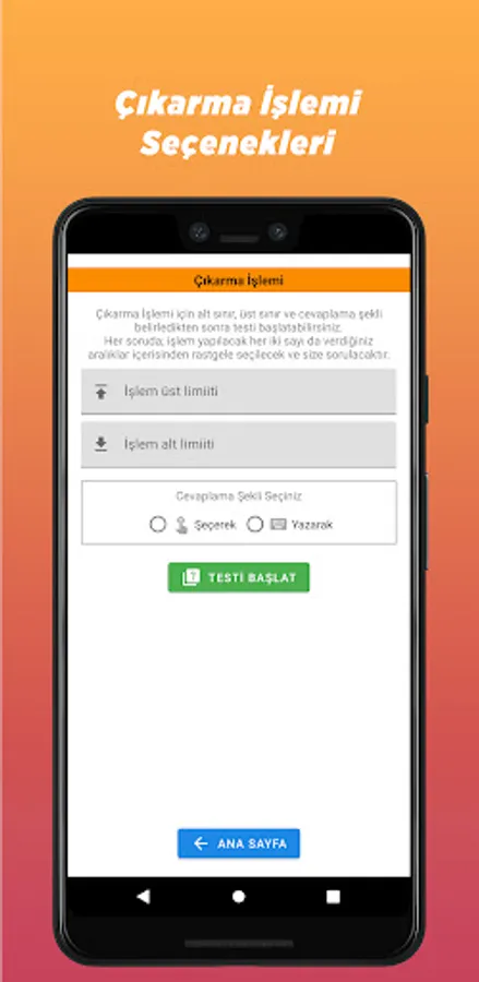 You can test yourself about 4 operation (Addition, subtraction, multiplication and division) . You can specify upper limit and lower limit for all operations.
