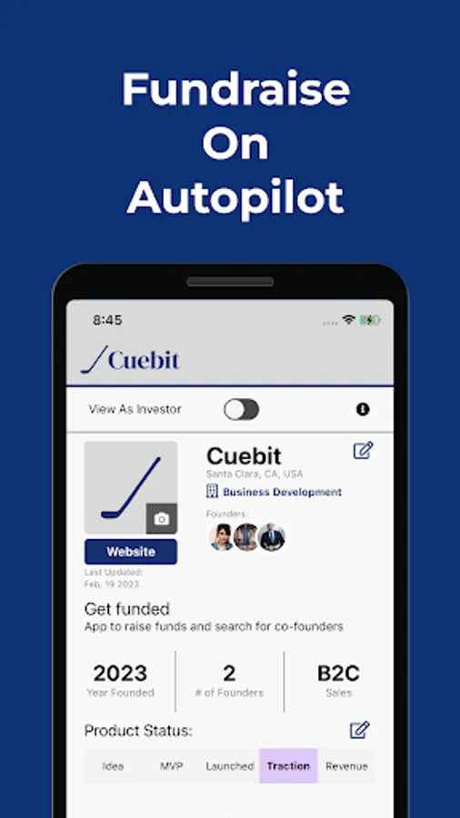 Startup - Setup your startup profile, and submit it to investors to get a first meeting