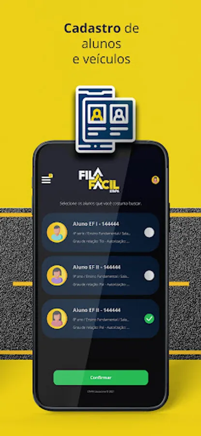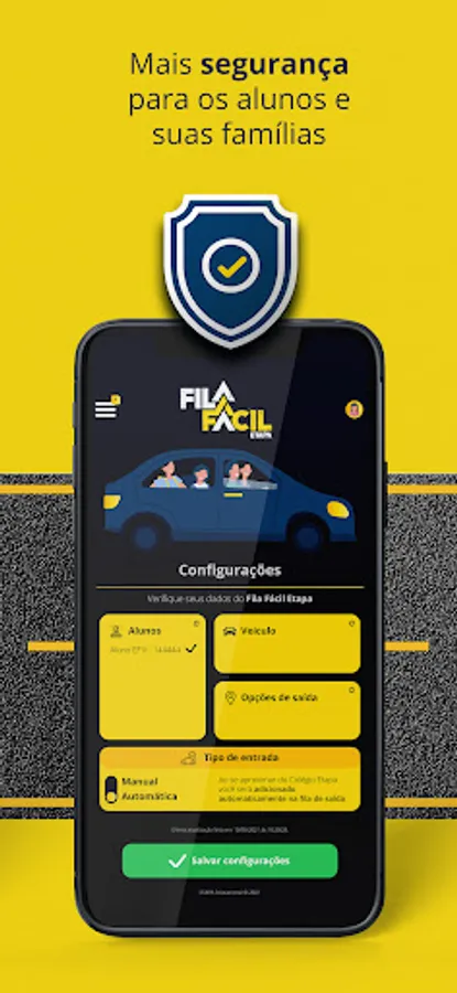 The Fila Fácil application is intended to organize the departure of students whose parents use the access to vehicles from Colégio ETAPA, reducing waiting time.