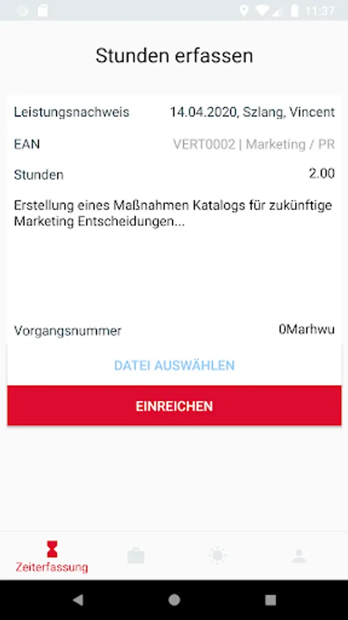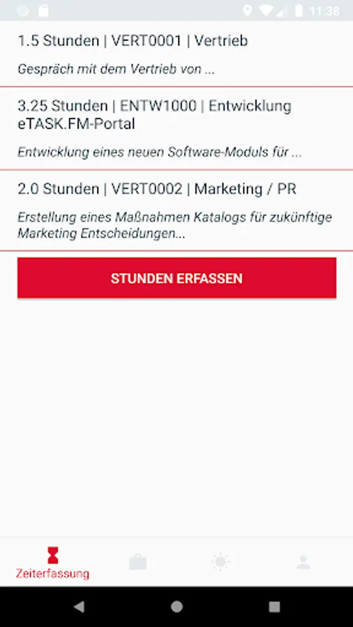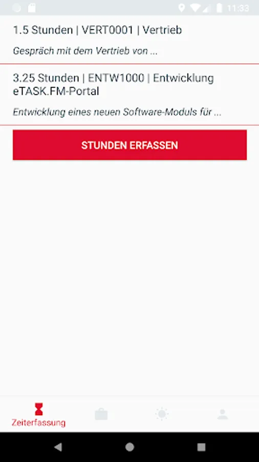 The eTASK Employee App enables eTASK employees to record their daily performance records smartly and comfortably. An overview of overtime and downtime as well as the submission of vacation are possible.