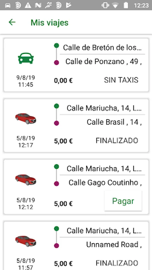 * History of your trips with the detail of your payment.
