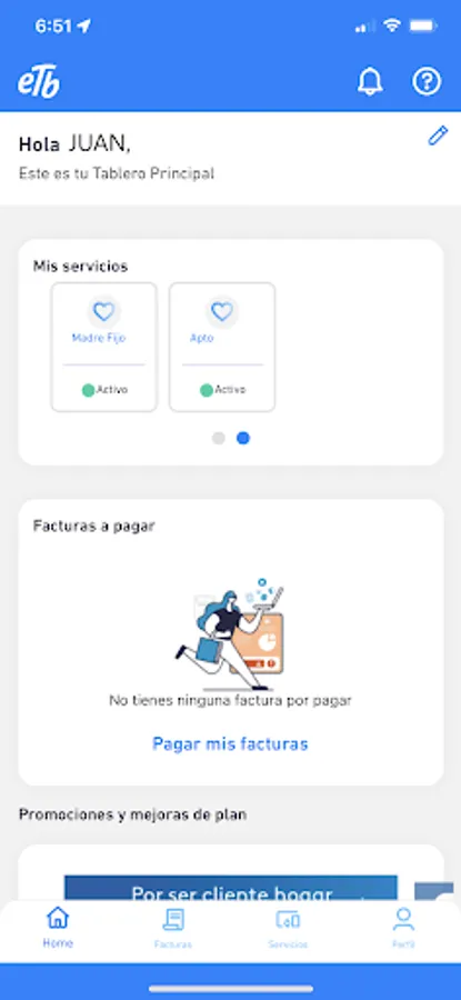 Your new MY ETB has arrived! Download it and enjoy everything it brings to you: check your services and products, manage your equipment and Wi-Fi networks, pay your bills and sign up for scheduled payments, check and carry out your procedures and requests, and much more, all from one place .