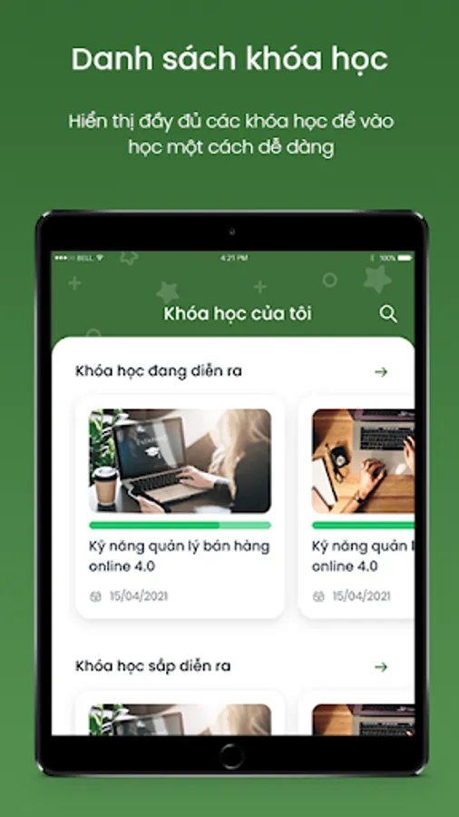 Trung Son Elearning application for learners is inherited from the CLS.VN system version 4.0, supporting the following features: