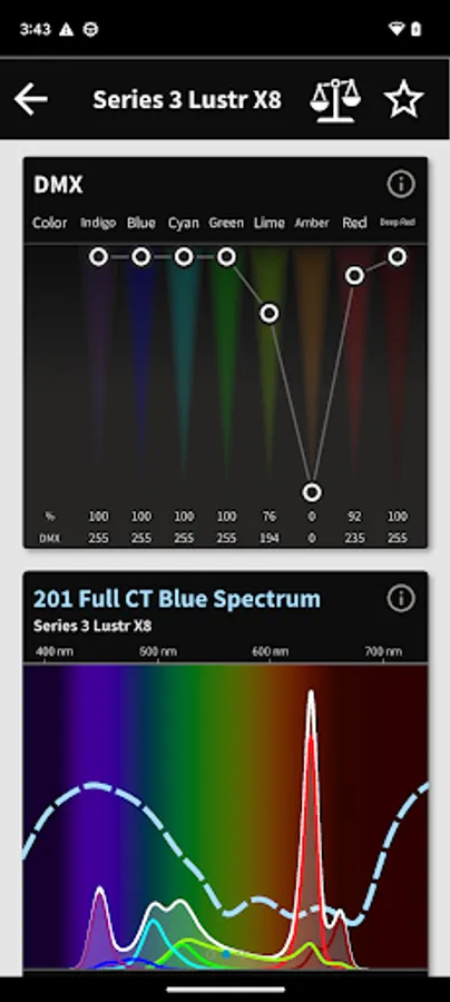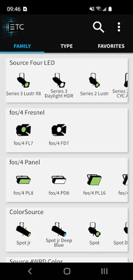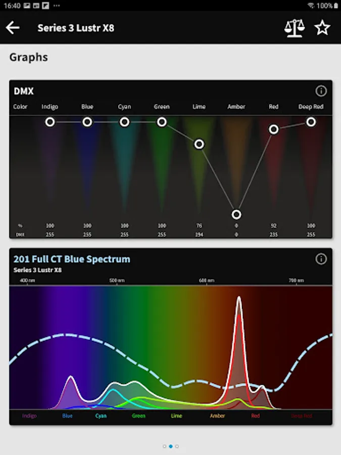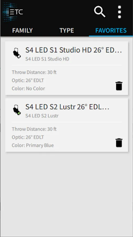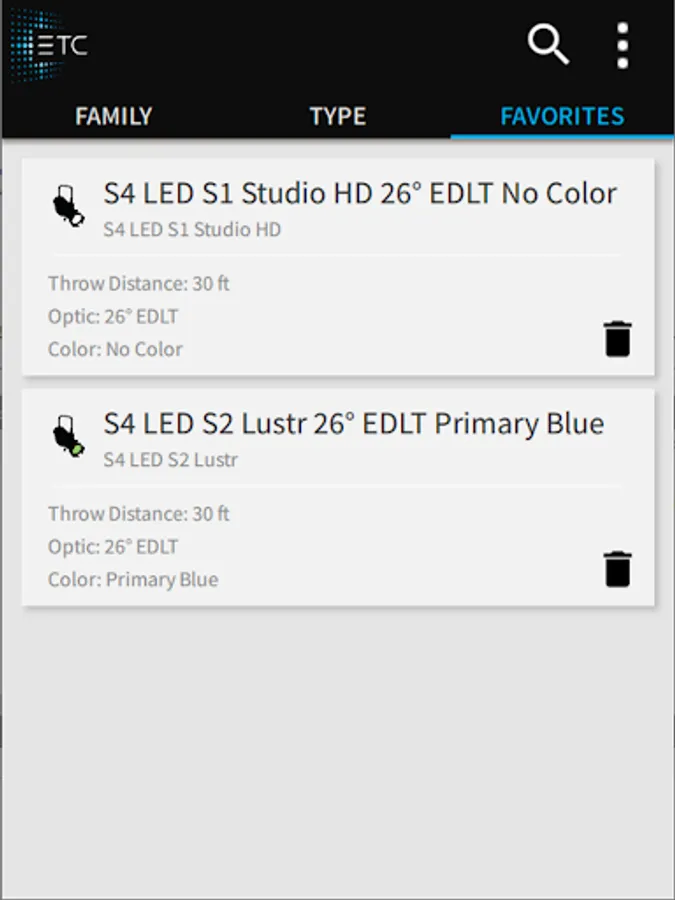 Designers, specifiers, and lighting enthusiasts can easily configure and display customized photometrics for each fixture in any color, compare products, and save favorites. Full gel libraries are included with DMX and full spectral values so you can easily reproduce any gel color you’ve used in the past. Select any ETC fixture and its array and quickly get condensed datasheet information.