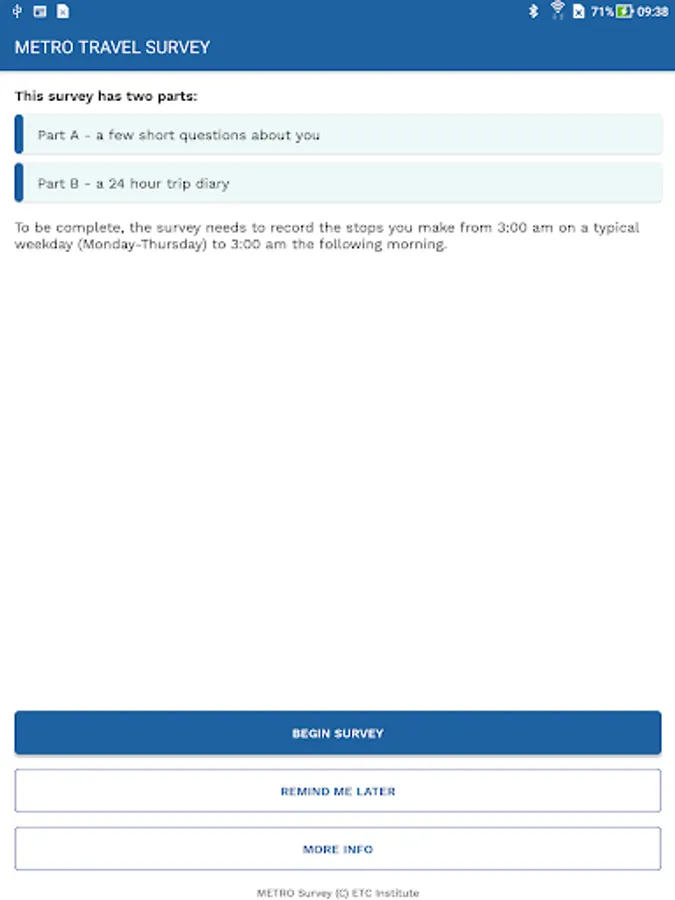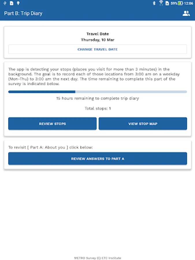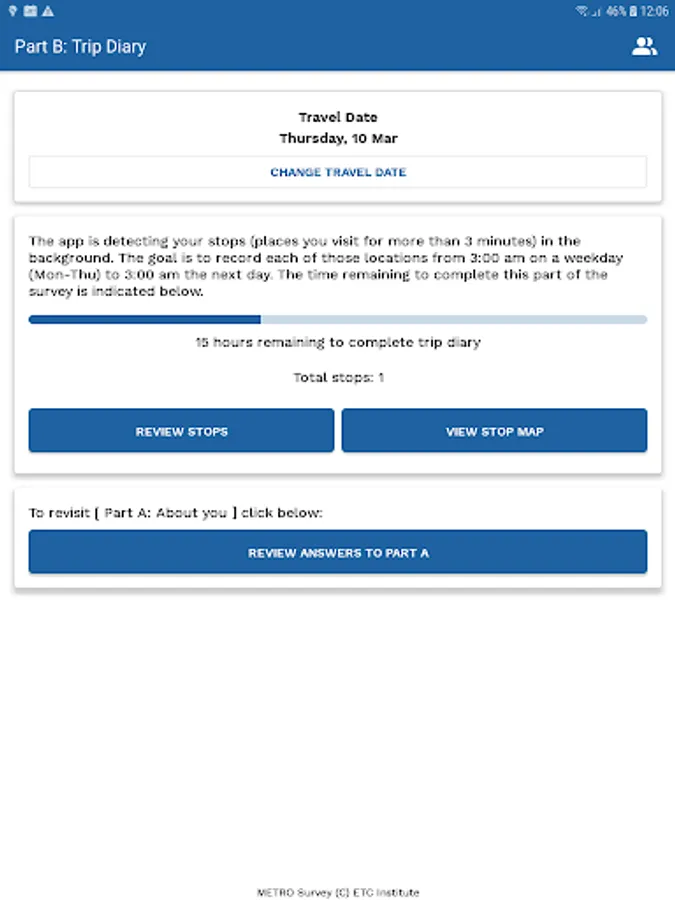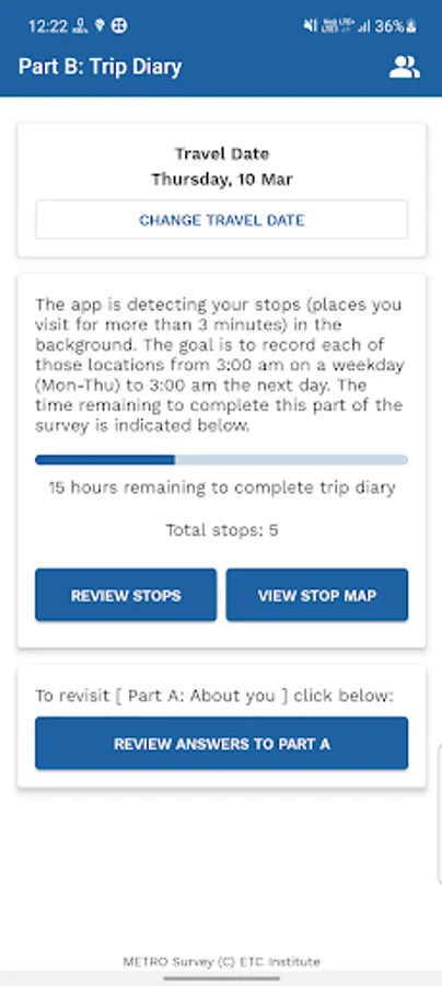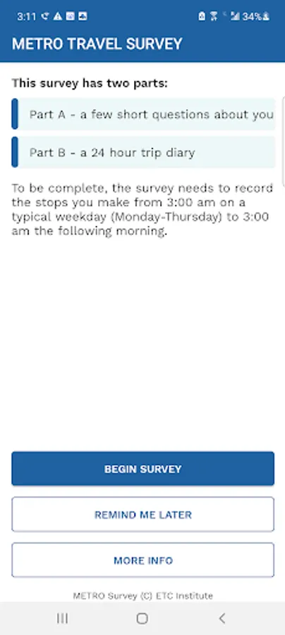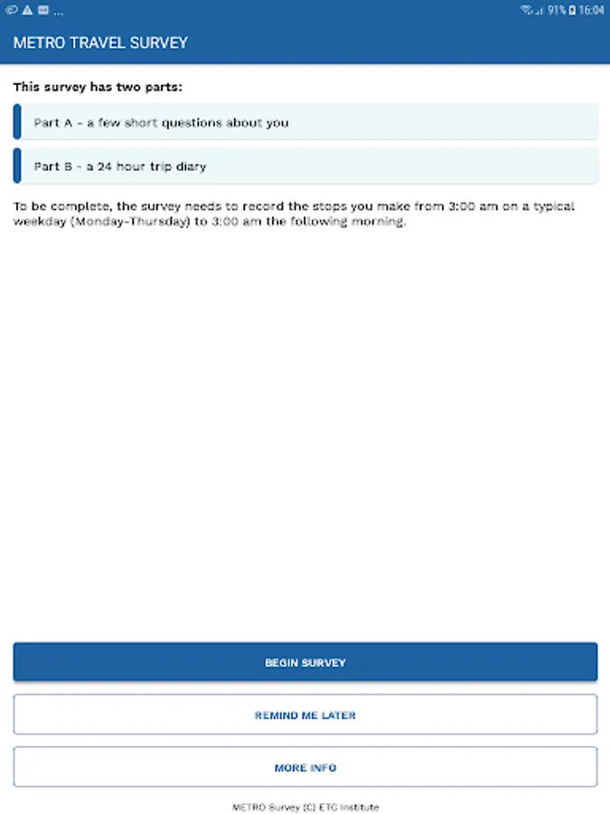 How can I participate? This app is a part of a larger transit survey designed to better understand how transit users travel. Participants are recruited at random mostly during live on-transit interviews. Participants that are recruited are able to participate via smartphone, online, or over the phone.