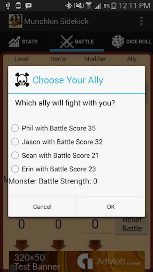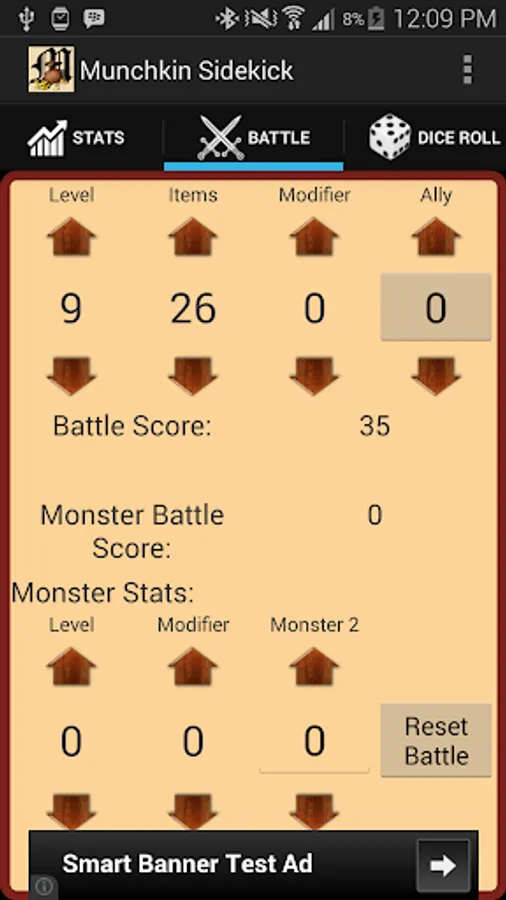 Includes a battle page that allows you to enter monster stats when fighting to keep track of if you're winning or losing!