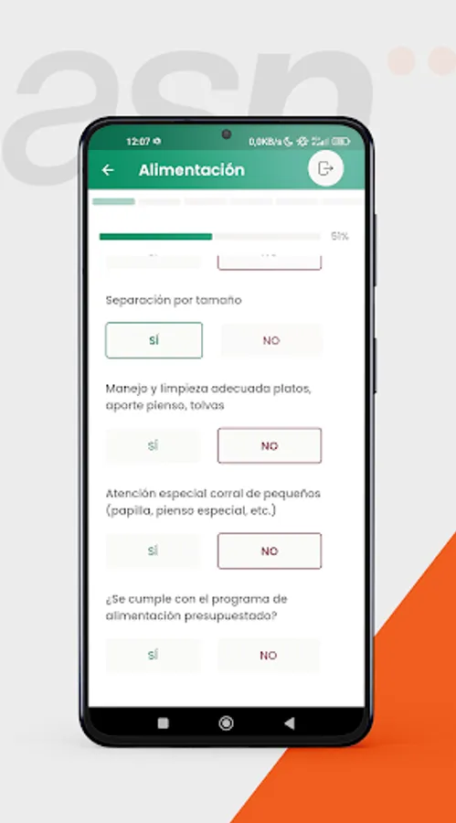 ASN has developed this mobile application to control the correct application of its systems in livestock farms. The development allows users to make checklists of a farm, being able to assess areas such as Food, Facilities, Health, Water, Biosafety and General aspects. In this way we see with the continued process of use how is the evolution in the implementation of the protocols of the ASN company.